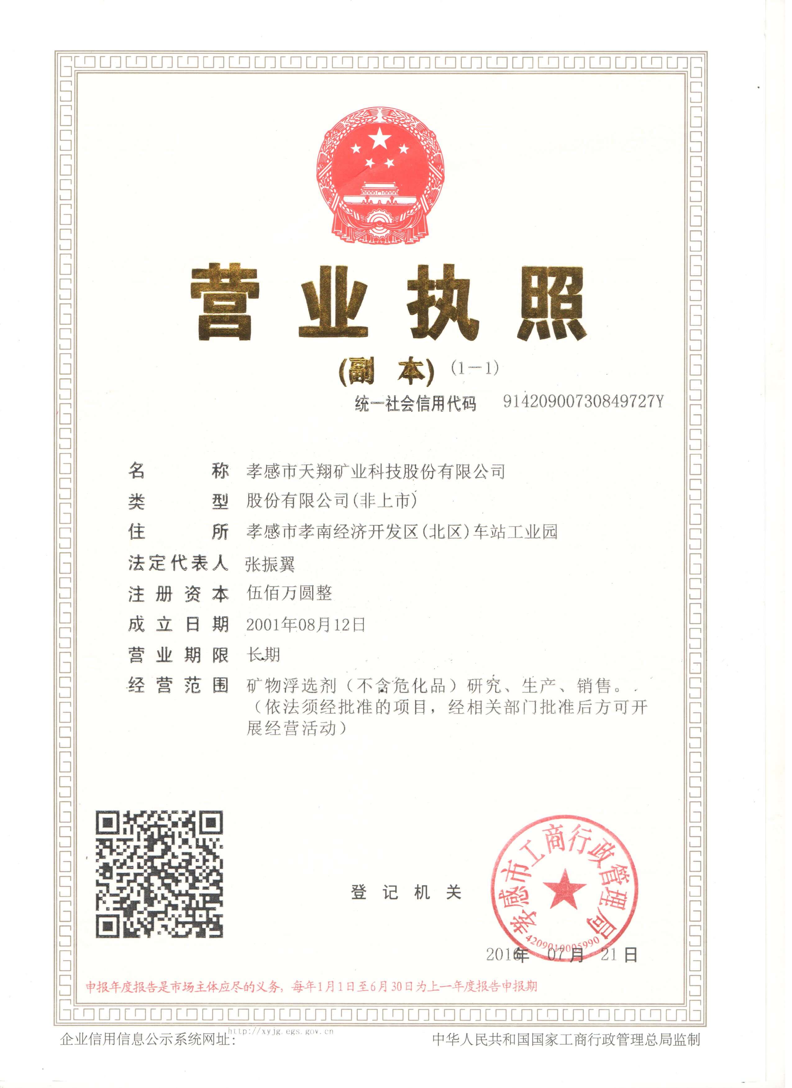 孝感市天翔礦業(yè)科技股份有限公司是一家專業(yè)從事氧化礦浮選藥劑研究開發(fā)和生產(chǎn)的企業(yè)。成立于1996年,經(jīng)過20多年的研發(fā)與生產(chǎn)實踐,產(chǎn)品覆蓋磷礦、鋰礦、螢石礦、鎢礦、錫礦、鈦鐵礦、鋁土礦、稀土礦等多礦種的浮選藥劑,在業(yè)內(nèi)享有一定知名度。一份耕耘,一份收獲,多年的積累一定會產(chǎn)生行業(yè)認(rèn)可的高端產(chǎn)品。公司將會提供給礦山高效、有競爭力的產(chǎn)品,會與礦山企業(yè)一道,共同為行業(yè)發(fā)展作出優(yōu)秀的貢獻。